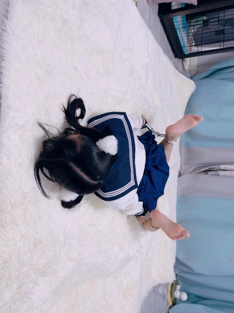 所以让茶茶驷马趴在地板上,用手铐把手腕和脚腕铐在一起呈驷马的姿势。左手铐左脚脚腕、右手铐右脚脚腕。然后调低机位,让大家第一视角欣赏茶茶的小脚~仿佛就蹲在被驷马的茶茶面前欣赏一样,大屏党有福啦~