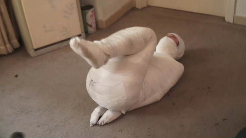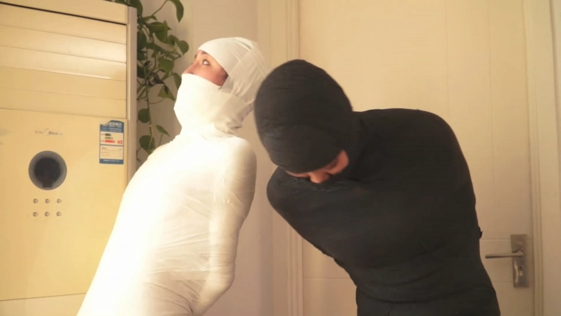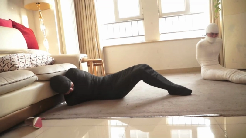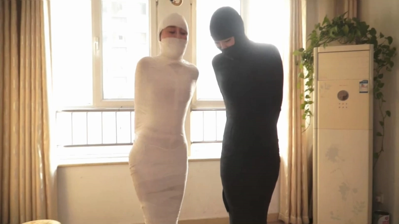 之后2个被包裹的只露眼睛的木乃伊美女的各种挣扎,互相磨蹭,累的全身香汗淋漓。