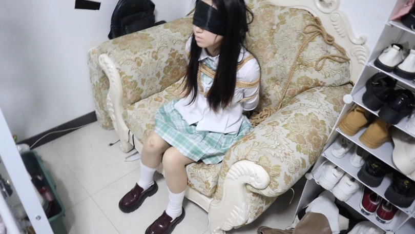 大沙发上的手脚被绳子绑住只能无力的娇喘的长腿JK女孩 i,狠下脖子玩弄