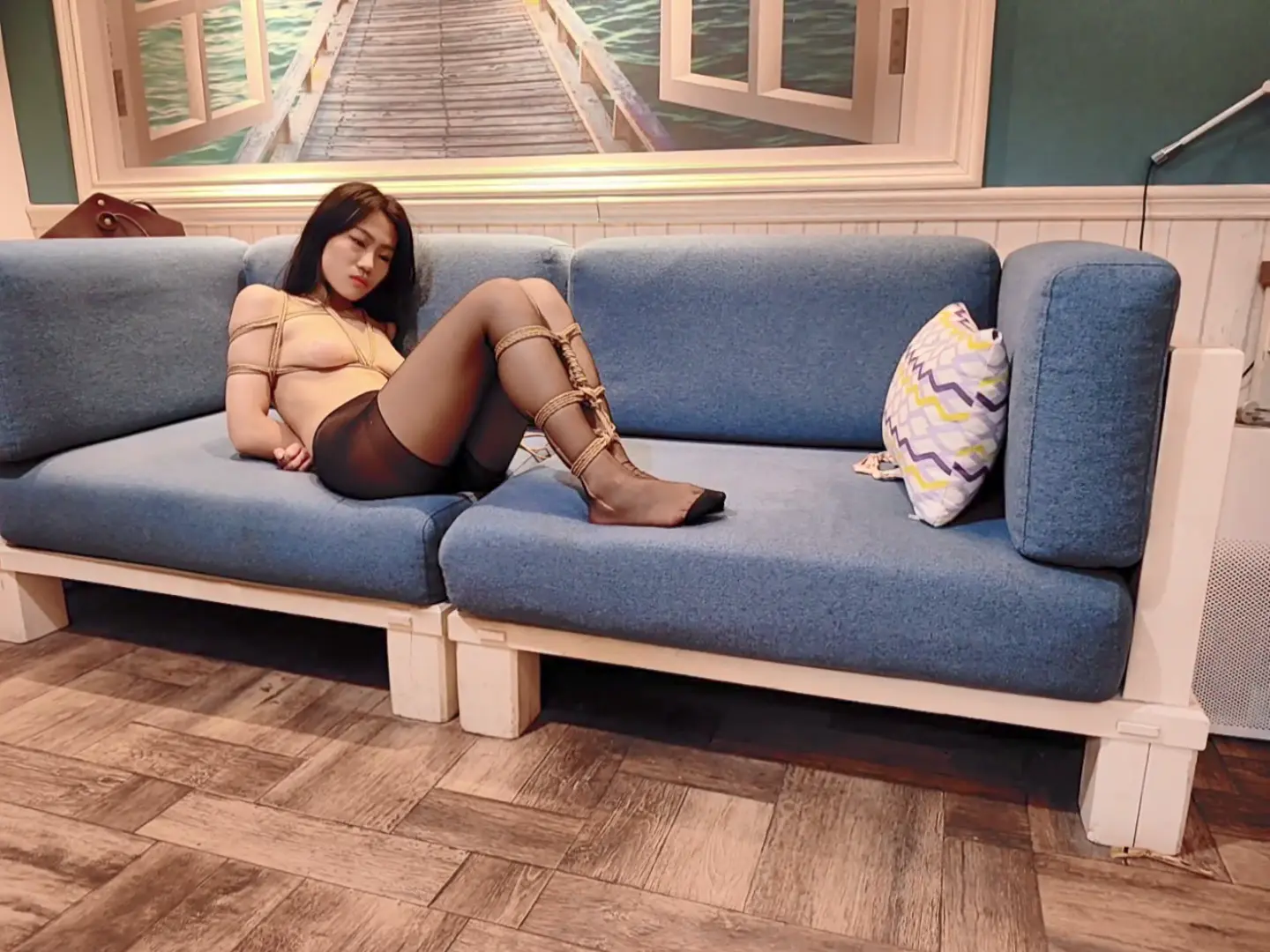 【缚仙】《背德人妻》第二集 凡凡只戴胸贴黑丝被紧缚 后入调教