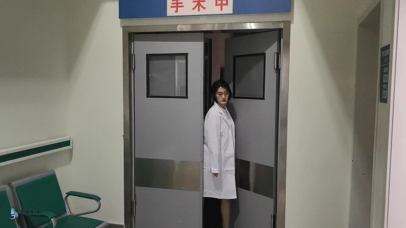 在下一个镜头,护士A及护士B的手腕已被胶带绑起,嘴里被棕色毛巾堵着,只能「呜呜」地叫。抢劫犯把她们带到手术室前,跟着拿走护士A口中毛巾,并叫她向在手术室内的医生说病人已到诊症室,请她尽快应诊。护士按着强盗所说的向手术室内的医生说。医生回复并说「知道了」。跟着,护士A被重新堵嘴。