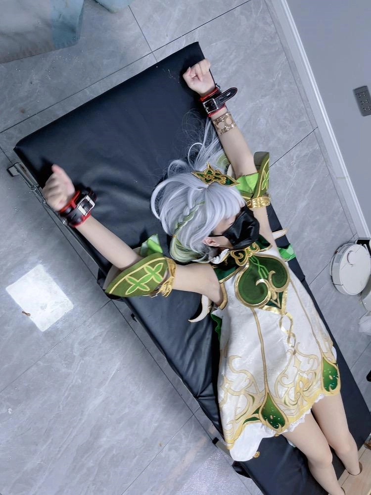 采访时只解开双手,脚底的按摩器会一直打开,茶茶需要在忍受足底挠痒的情况下回答问题~