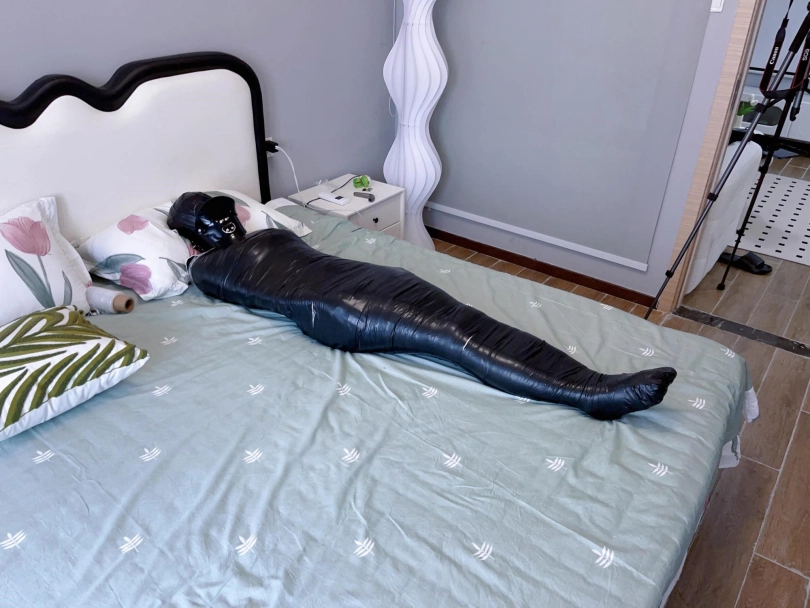 最后妹子和我说想出来,开玩笑,之前说不想解开现在想出来?没那么容易!直接给了一个安全剪刀,自己能出来就出来,无法自己脱缚就再放置三小时再放她出来~