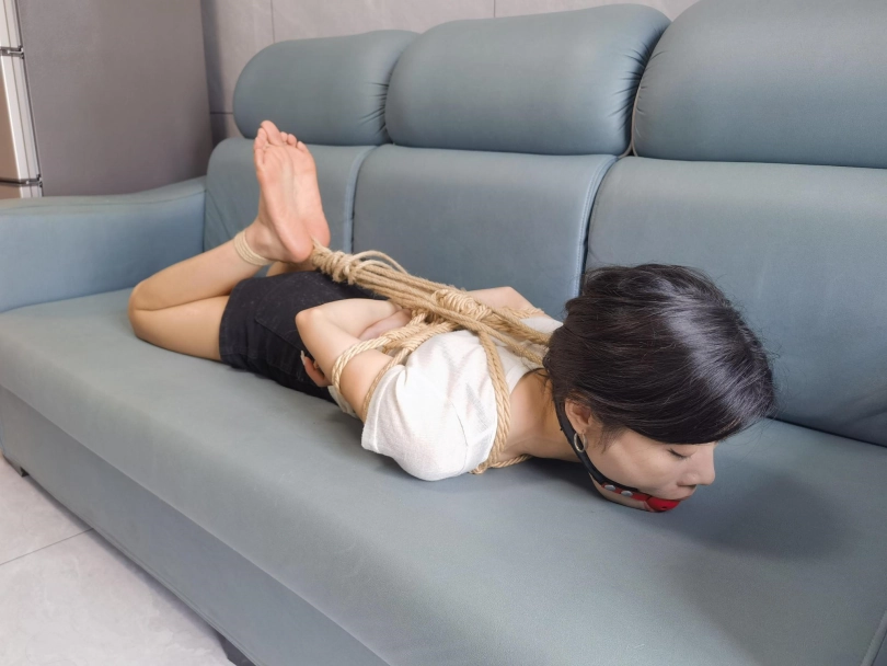 今天又把安琪日式驷马绑起来了,男朋友在旁边看着不知道会有什么反应,安琪这妹子耐性柔韧性还是挺不错的,戴上口球更加诱人了,但是在这个难受的姿势下,还能睡得着也是挺厉害的
