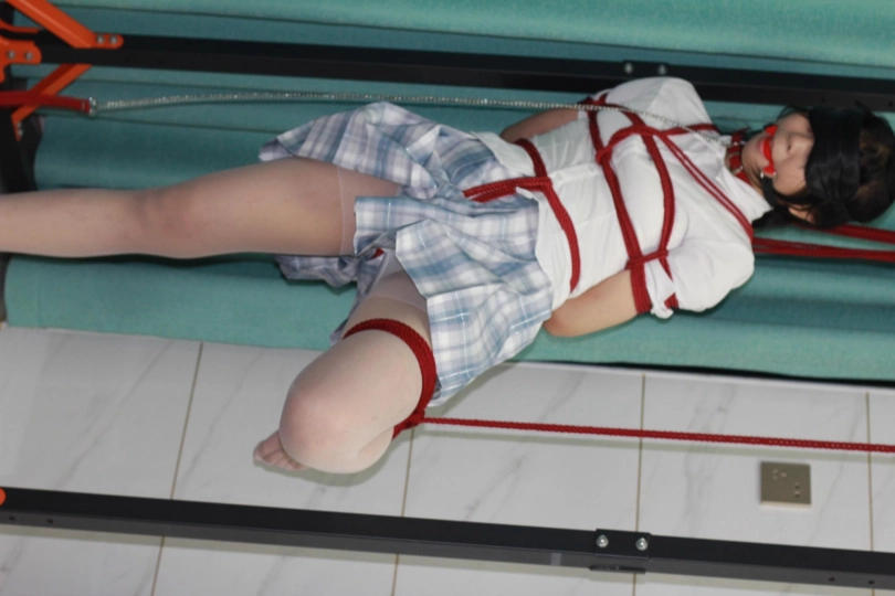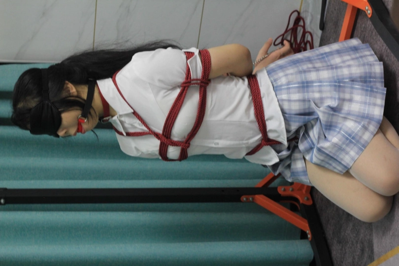 18岁新模特第二次拍摄,清纯可爱,剧情是被单腿吊起来,被tk+塞td,妹子躲闪无用,被无限折磨至哭