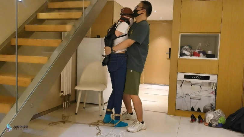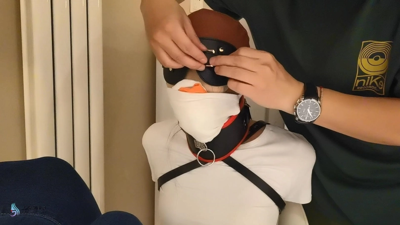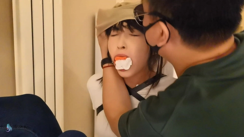 女医生坐在椅子上,她的手被单手套束缚着,她的双脚被吊着绑着。患者亲吻着医生的棉袜脚,脱下她的棉袜发现里面居然还穿着一双彩色连裤袜。刚脱下来的棉袜塞进医生的嘴里,头上套上丝袜头套,胶带缠绕嘴部,防止医生吐出嘴里的原味棉袜。再给她戴上一个皮质头套,只露出眼睛和鼻子部分。拿起女医生的另外一只棉袜放在她的鼻子初,外面用口罩蒙上固定住袜子,这样每次呼吸,女医生都能闻到自己穿过的棉袜味道。脖子上戴上脖套,这让她无法低头。她的眼睛也被蒙上。患者拿出一个电动TD放进医生的裆部刺激着。然后贪婪的亲吻着女医生的彩色丝袜脚。又用棒棒刺激着女医生的裆部。无法动弹的医生开始抽搐呻吟。最后玩够的患者将女医生扛起离开。。。