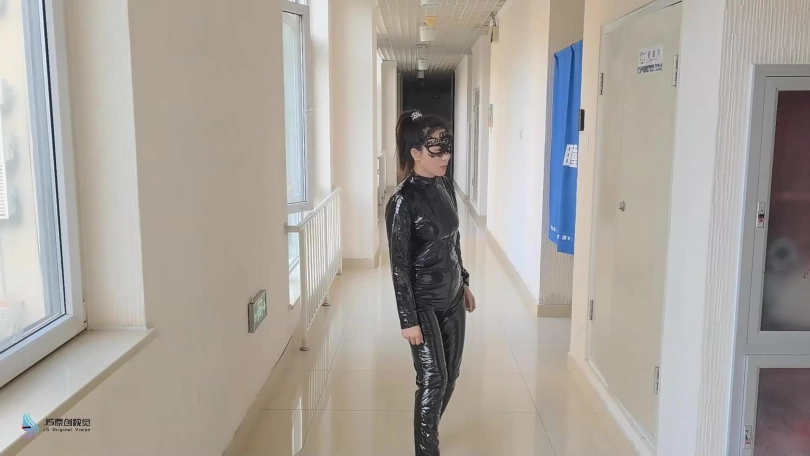 你把她放在地板上,拿出许多卷胶带。你脱下她的高跟鞋。她可以穿长衣服/连裤袜,以确保它不会粘在她的皮肤上。你用胶带把她的整个身体做成木乃伊,确保它尽可能地紧绷和整洁。你做了多层,以确保她非常安全。你把她的手臂绑成木乃伊的姿势,我可以举个例子。对于她的头/脖子,你用Saran wrap包起来,然后用胶带把它做成木乃伊。你戳她的鼻孔,给她的嘴开一个洞。你还为她的马尾辫留出了空间。然后,除了鼻孔/嘴巴之外,她的整个身体都会用胶带粘在地板上,一条长长的胶带放在地板上横跨她的身体,并固定在另一侧。你这样做是为了完全覆盖她的身体。