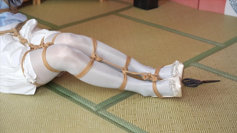 嗷嗷被绑在柱子上,需要把剪刀捡到自己身边