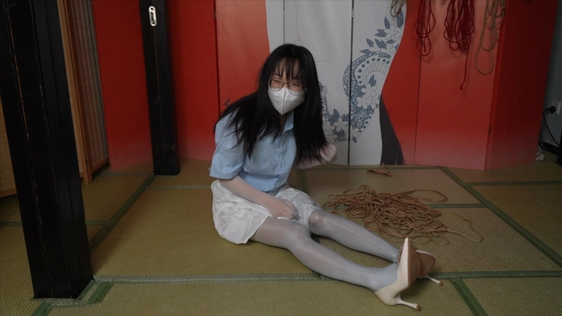 【象人】嗷嗷-灰色油亮丝袜,高跟全身缚+双层全包!