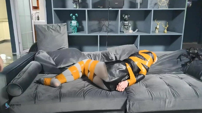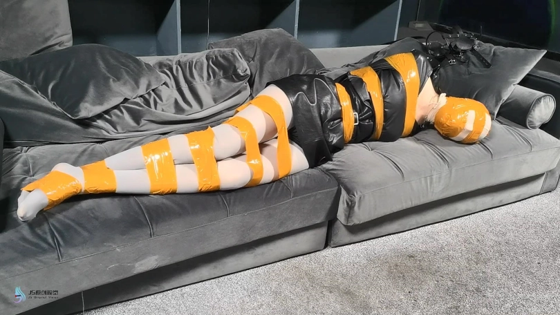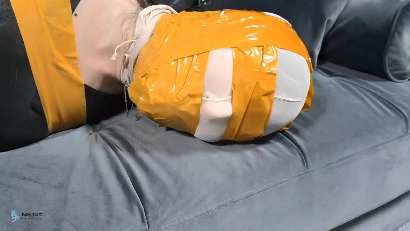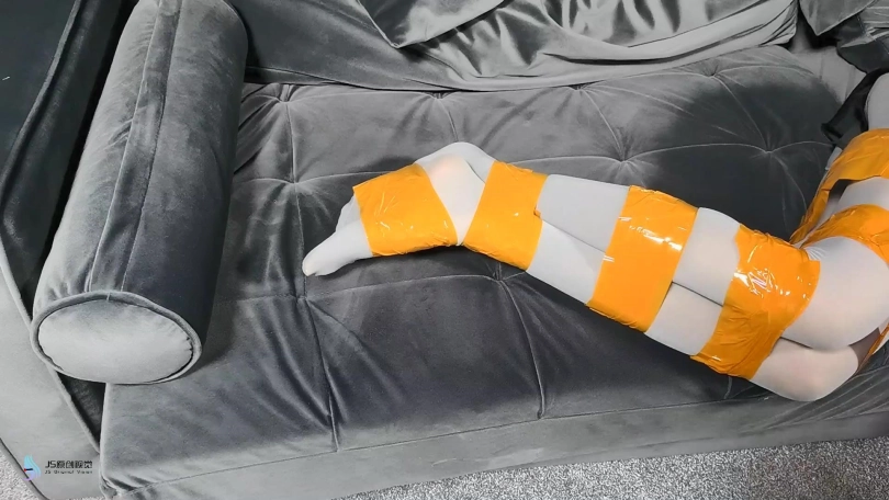 【JS】【欣妍】灰色胶带捆绑丝袜堵嘴套头蒙眼TK放置