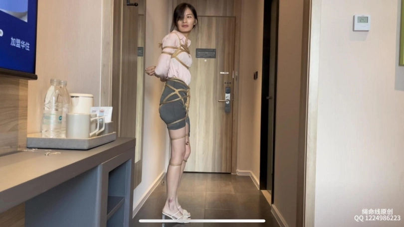 诗晴没穿过高跟鞋,所以就即兴给她来了个日式绑腿高跟鞋罚站,那个脚酸的解开之后就要脱鞋了,哈哈哈!