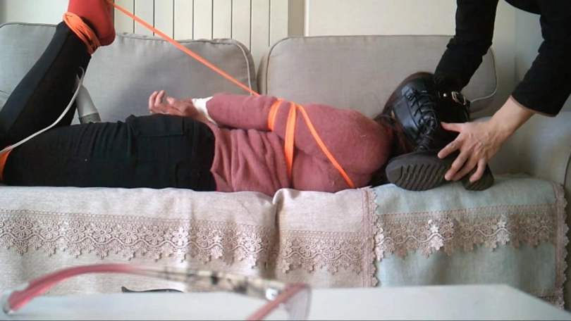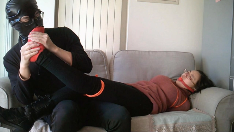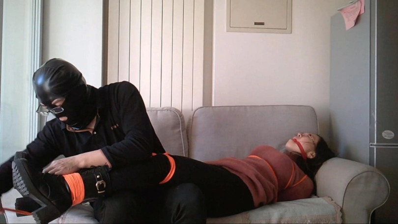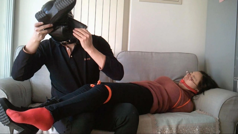 偷藏好摄像机,在没有告知的情况下突然发动袭击,驷马捆绑-、口球,脱鞋强制闻自己的靴子