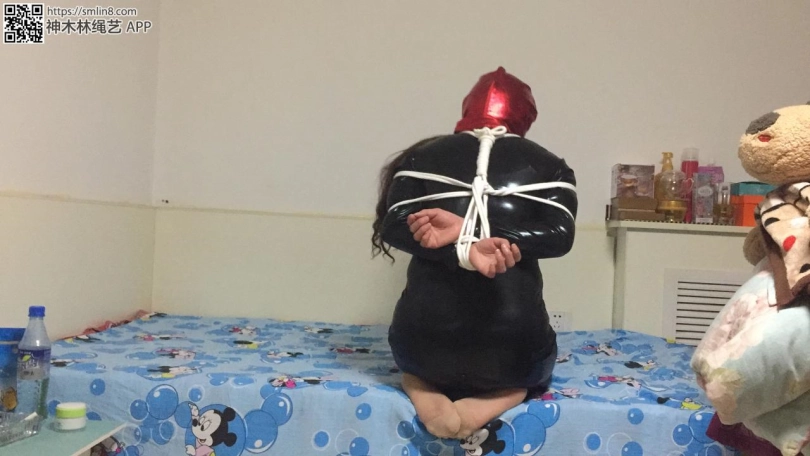 【JS】妖妖黑色胶衣,棉绳捆绑,丝袜塞嘴,胶带木乃伊(上)
