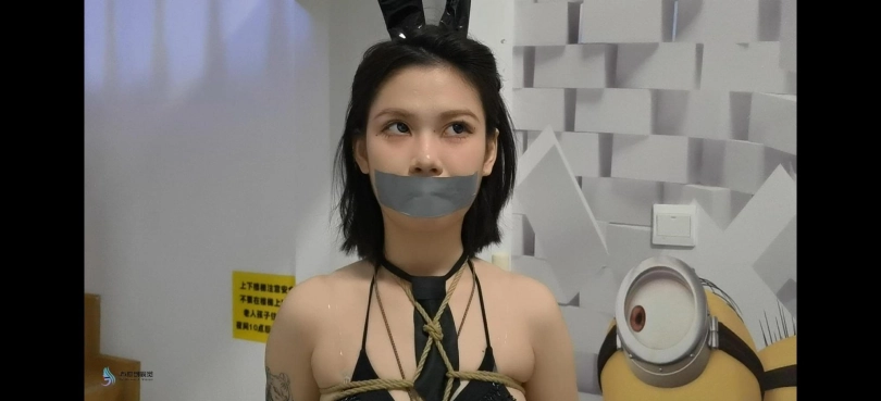 【JS】夏瑾性感兔女郎渔网袜高跟鞋站立龟甲缚多种胶带封嘴柠檬口球流口水
