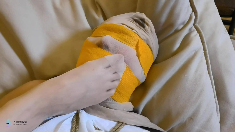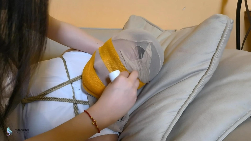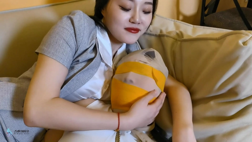一名女小偷潜入一间房子,但她的目标并非财物,而是女性的丝袜。她拿起桌子上的丝袜疯狂的闻着。这时她听到门外传来脚步声,小偷匆忙的藏了起来。女主人开门回到家中,坐在沙发上敲打着双腿。女小偷悄悄的从后面走了过来,捂住了女主人的嘴巴。当画面再次亮起时,女主人的手脚已经被牢牢的捆绑起来,躺在沙发上挣扎着。女小偷拿着两条丝袜走了过来说“来,看看我找到了什么,这都是你没洗过的,把嘴张开”。然后她将一条丝袜塞进女主人的嘴里,再用另外一条丝袜套在她的头上,再用绷带缠绕住女人的嘴巴和眼睛,防止她吐出丝袜。