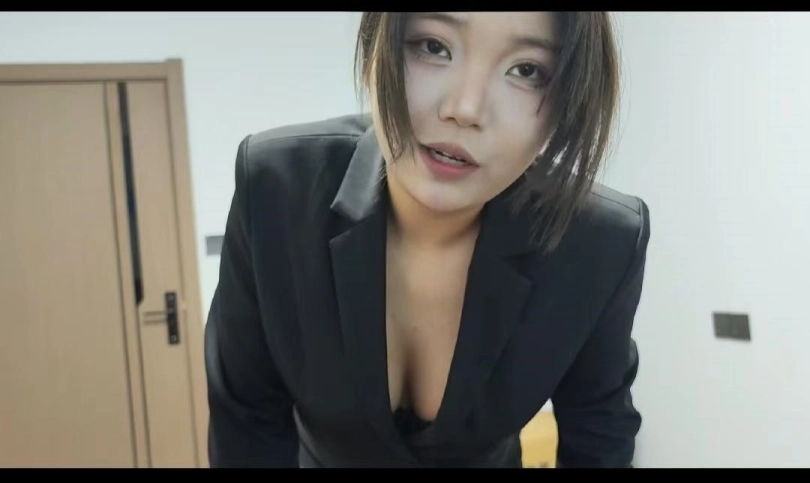 秘书小文到办公室找老板玩捆绑,被老板五花绑到办公桌下,当成脚垫。