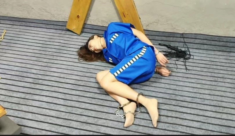 佳佳体验过一遍还不过瘾,带上手铐脚铐,求男朋友再次陪她体验,这次换上囚服,别的不说,换上囚服佳佳更有一番风味,也更像女囚女烈了,老虎凳,十字架,X架,各种刑法来一波,虐的佳佳身在其中