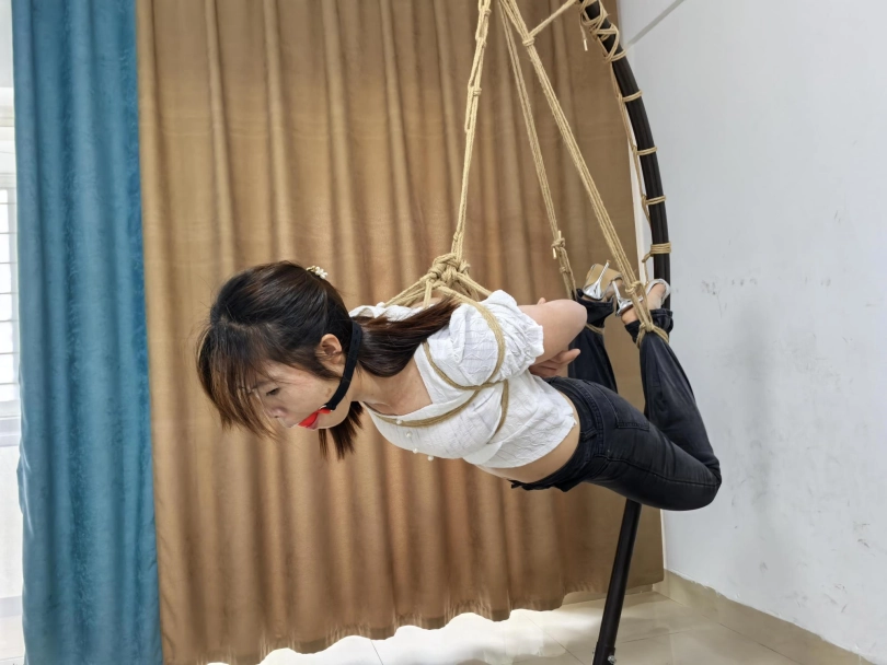 人妻姐又来了,这次给她玩一点高难度的,刚开始说把她吊起来她还是有点慌的,不过起吊完成后还是挺好玩挺有意思的,戴上口球后说不出话,她就更慌了,哈哈哈!后面因为绑法不太对,弄得她手有点麻了