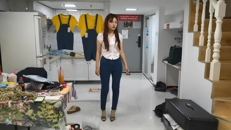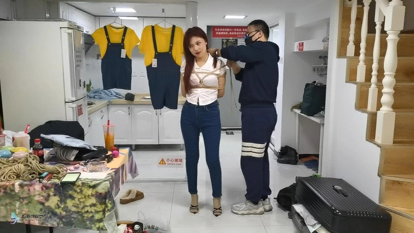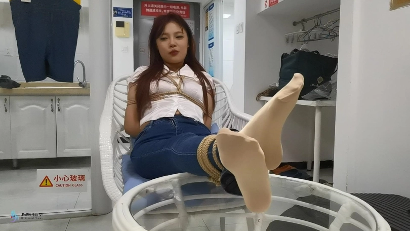 着装:白色长袖衬衣,深色牛仔裤,里面肉色油光丝袜,脚穿高跟凉鞋,然后上身捆完后走上一两圈,然后将晓凡双脚交叉,把腿脚捆在一起。站着问一个问题:感觉现在的捆绑姿势难不难受?能坚持多久?你会不会觉得自己被绑起来很漂亮?