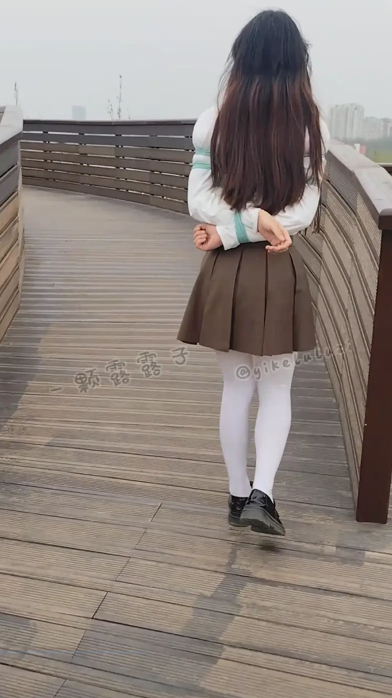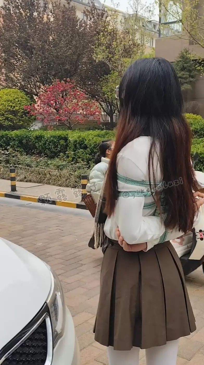 从公园回到车上也是没有披衣服,中间还遇到了公园巡逻保安,索性没有被发现。从公园玩爽了之后又把露露带到商场。多次和路人擦肩碰面,白丝短裙的回头率本身
