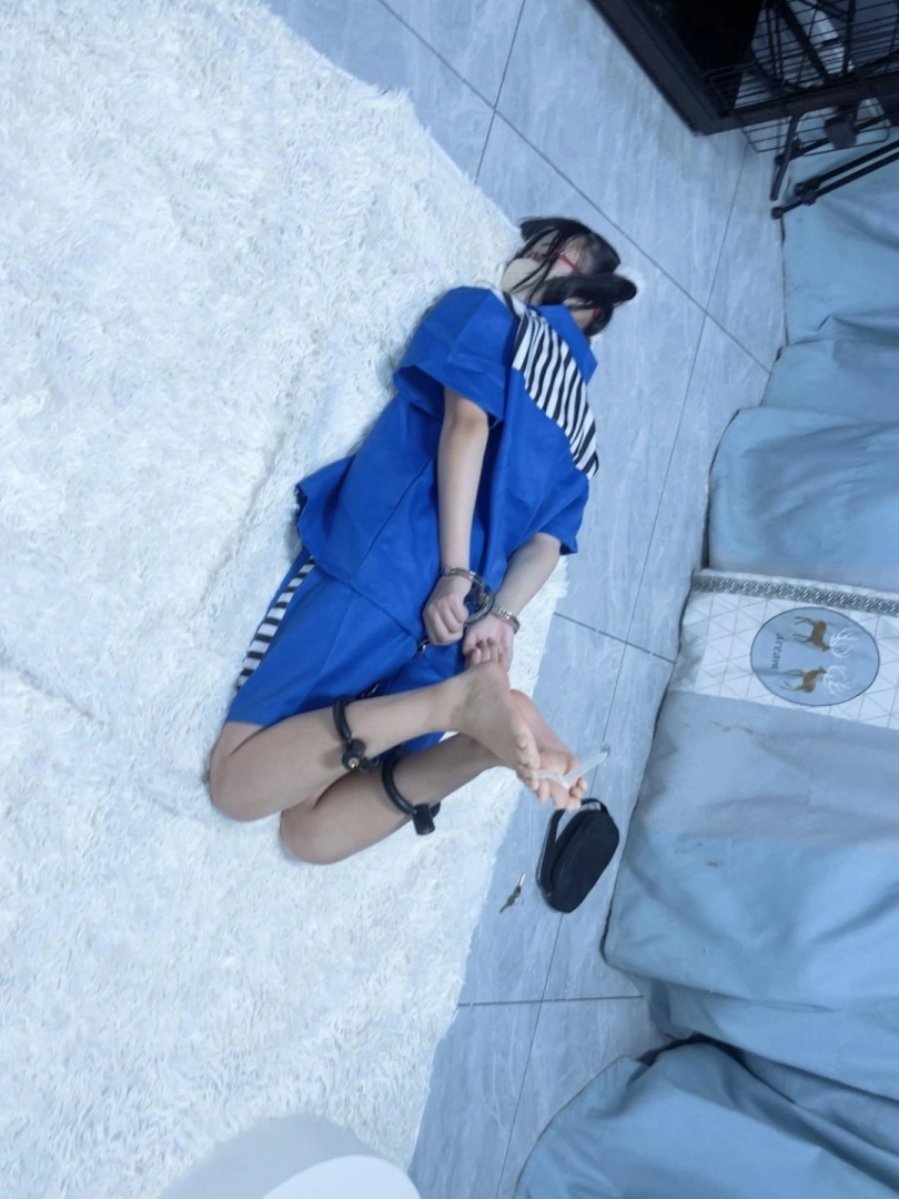 命令到:抓捕抱头蹲下!糖糖你因涉嫌贩毒被捕了,现在命令你坐地上把鞋袜给我脱了。糖糖抱头说:能不能不脱啊,光脚走路太丢人。我说:少废话犯人都是脱了鞋袜,打赤脚带手铐脚镣的。糖糖感到很羞耻,无奈回答:是,女犯明白。坐地上把脱掉鞋袜后,命令糖糖趴在地上给她上背铐和脚镣然后带走。押着她或者自己走都可以(走一段就好),路上催促命令说:走得快点,光脚不会走路吗?