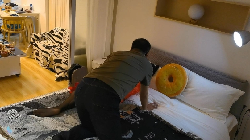 女孩在家中休息,被潜入进来的男人大字控制。男人将女孩押解到客厅站好。房间里窜出多条绳子缠绕女孩全身,并编织出一张蜘蛛网将女孩牢牢的束缚在网中。女孩的嘴巴也被绳子塞入口球。男人咬着女孩的脖子和腿部,女孩被折磨的知道昏迷。