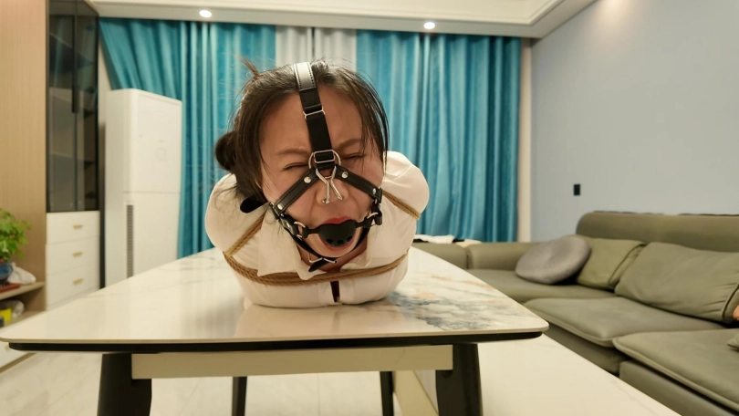 给紫涵欧式驷马放置到桌子上,要求就是一定要紧,马具口塞把头拉起来,最后解开疼的紫涵哼哼半天