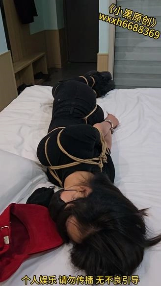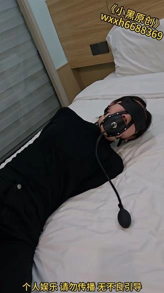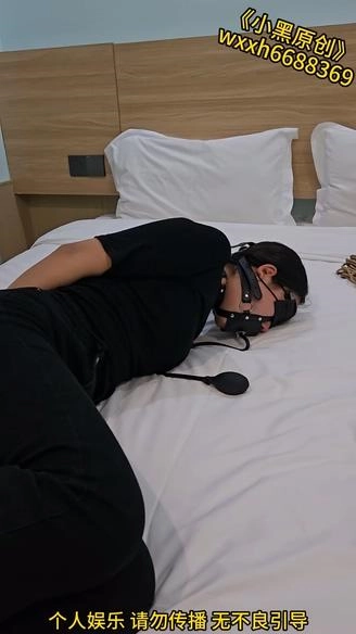 【小黑】大学生背着男朋友来体验捆绑,男朋友在家等她,她说中途有生理反应了,马具充气口塞堵嘴干呕,直臂紧缚挣扎。