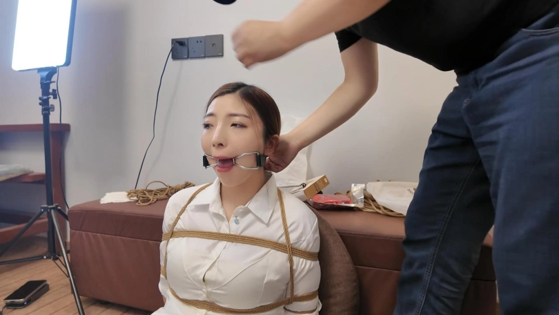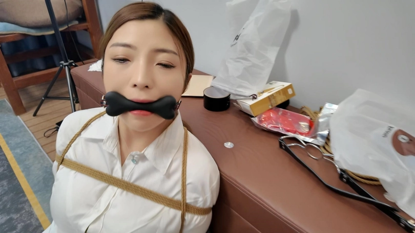 佳佳后手观音口塞训练第一期,一个后手观音捆了半个多小时,这次试用了两种口塞,分别是狗骨头口塞和不锈钢口环,还是口水直流啊,工作室一共准备了十几种口塞,一样一样的都要给她慢慢尝试训练