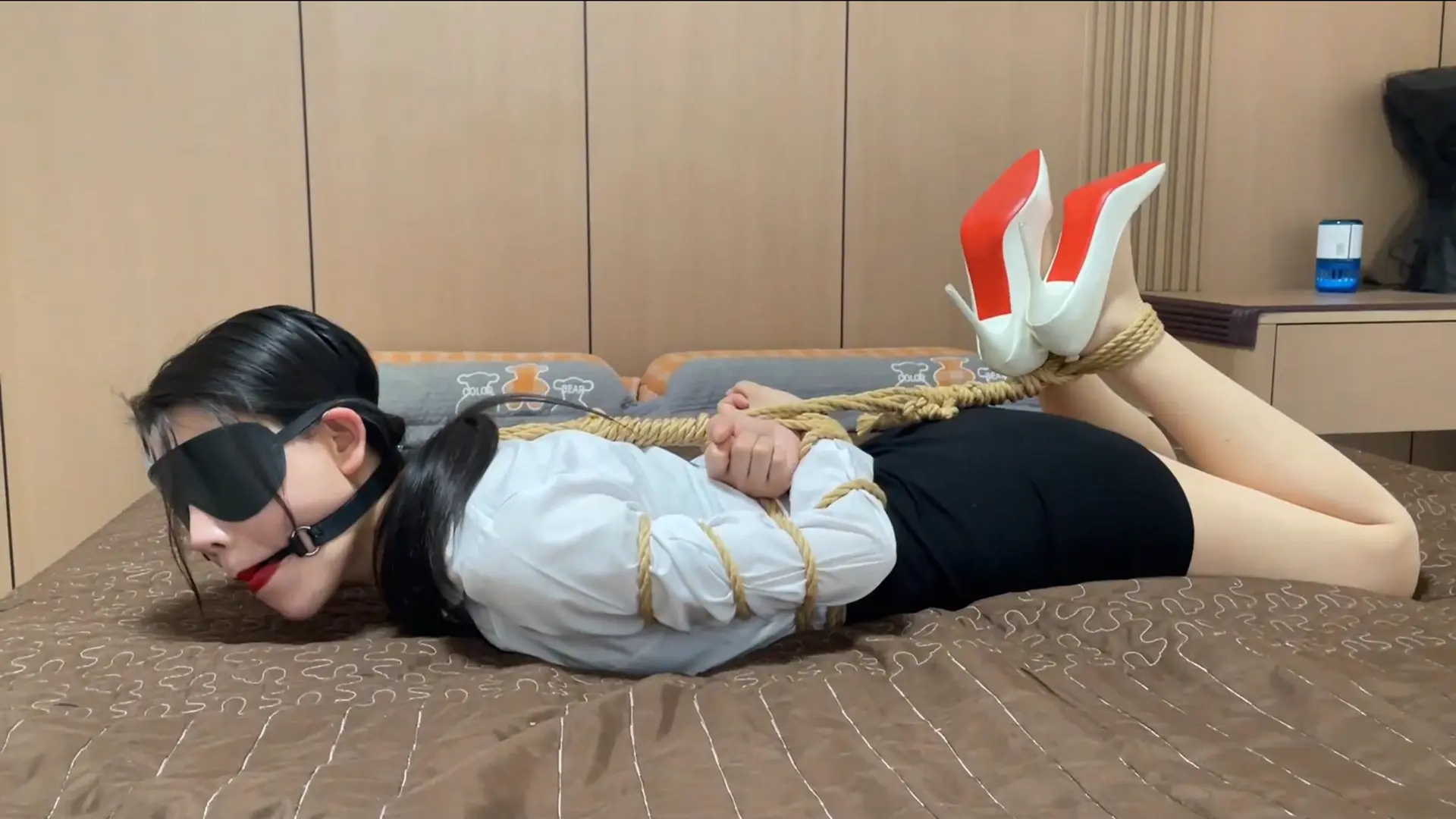 恩可把柳洋迷晕后褪去她身上的OL套装,改换成黑色的连体丝袜,白色高跟鞋也换成黑色凉高跟,随后将柳洋后高手折腿缚捆绑放置在床上。趁着柳洋还在昏迷,恩可在房间内一顿搜刮,搜出了几张银行卡,“看来这小妮子没什么现金,都把钱存在银行里了。”