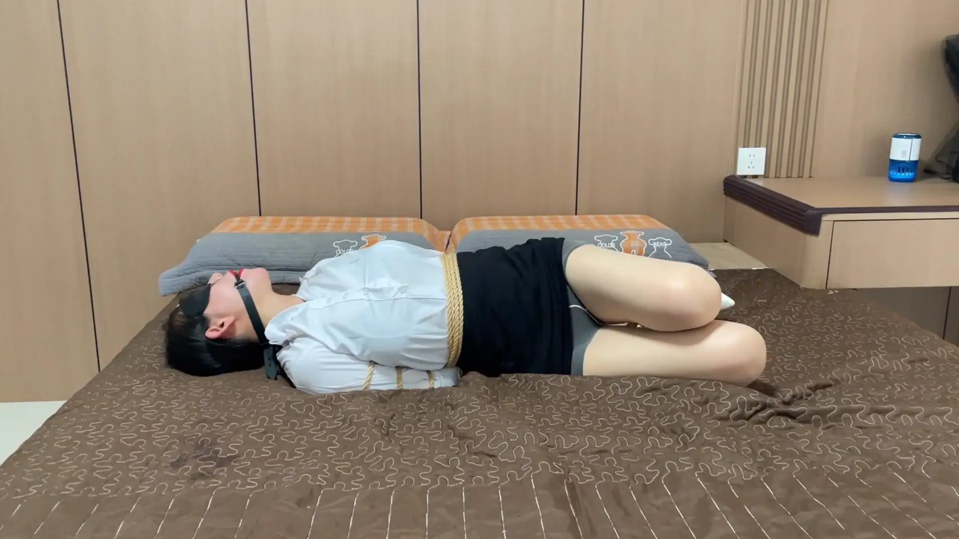 柳洋模拟执行任务时被擒的场景,将自己捆成驷马,嘴里堵着口球,眼睛被眼罩遮住。将自己捆绑完之后柳洋就开始在床上挣扎脱缚,挣扎了几分钟绳索并没有挣开的迹象。“好久不练真的手生了,不过这越挣脱不开越兴奋的感觉是怎么回事,难道这就是受虐M的感觉吗”柳洋心里暗自嘀咕道,随后柳洋慢慢减小挣脱的力度,整个人竟开始享受被绳子束缚的[X_X]。