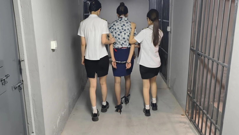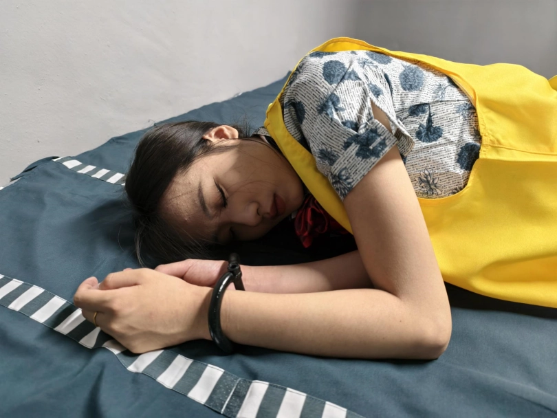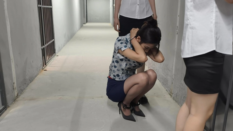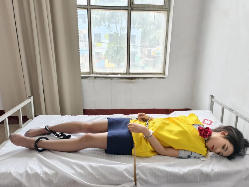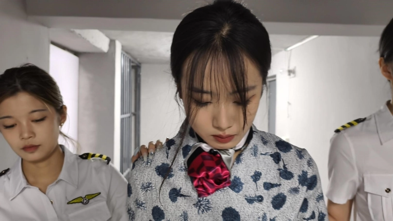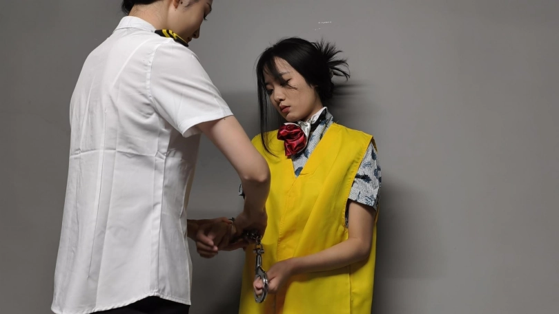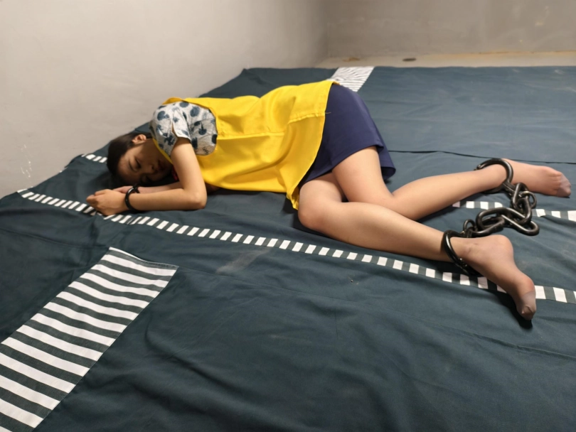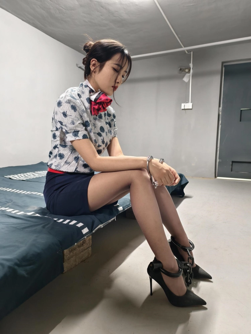【忘忧社】新模特若琪饰演一名帮忙境外运输D品的空姐,被帽子姐姐抓获,一开始拒不承认,被吊起手脚狠狠惩罚,一会就老实了,在监狱里带手铐脚铐,指认现场,新模特希望大家多多支持,喜欢若琪的欢迎。