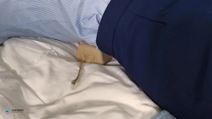 A被裁了,手上什么都没有,脚上穿着丝袜和拖鞋,在一栋废弃楼走廊走着,A实在太累,看到一间没人的房间,走了进去,房屋装饰很好.A心生疑问:“这么好的房子没人住?”但是A走了很久,脱掉自己的拖鞋,用手指按压自己的脚尖,然后给自己的双腿做按摩(丝袜特写)躺在床上睡着了。
