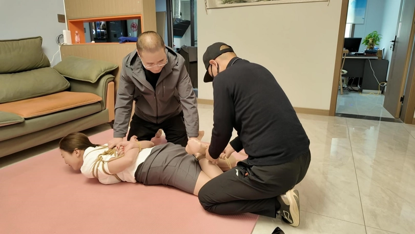 女老板挣扎捆绑,跑着想要逃脱,被听到动静的两名讨债人飞快的捉了回来,从新强制按着捆绑起来,这一次狠狠的把腿捆成个粽子,并且在房间搜出二十五现金,更加证实了女老板是刻意拖欠工人工资,两名讨债人决定好好的折磨收拾她