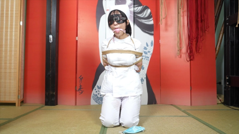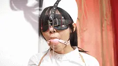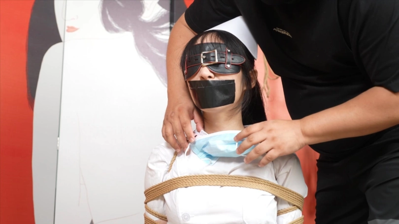 最终胶带封住嘴巴,用口罩把口球上的口水擦干净