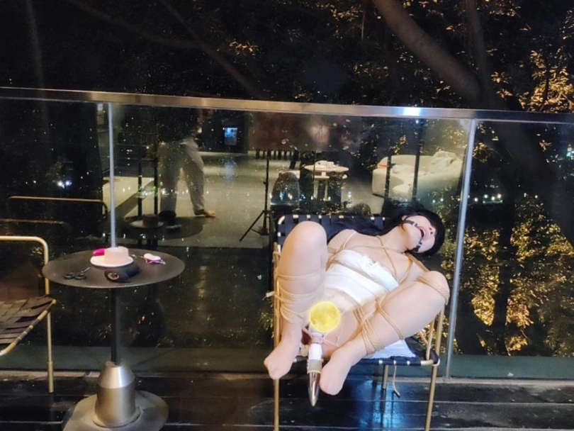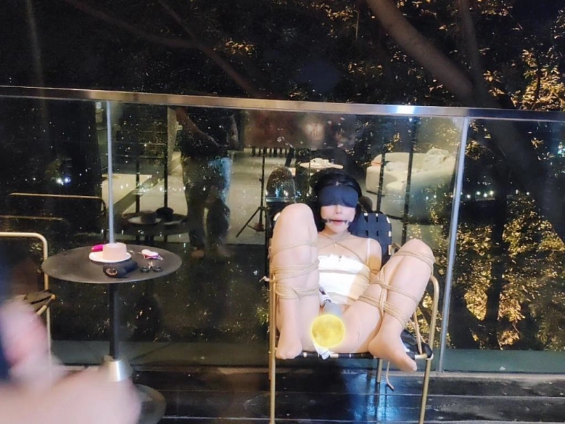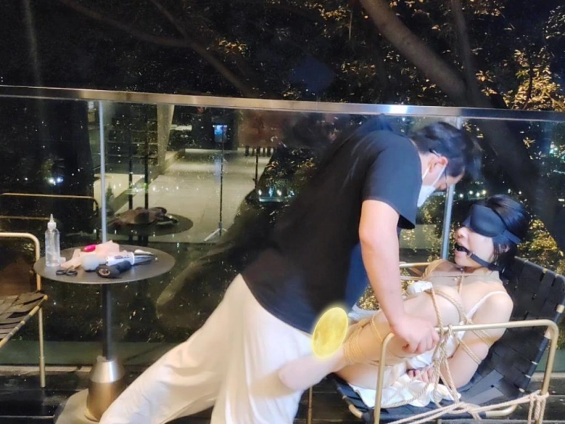 一个有大阳台,阳台下面就是车水马龙的过往行人和车辆的酒店,这个m想要露出又不敢,就只好放置在离行人和车辆近一点的大阳台上了,蒙着眼睛还时不时的转过头往下看,深怕被发现了,可以她什么也看不见!独自放置在阳台装上玩具许久,开始没有绑脚,想自己进屋里奈何什么也看不见,只能瘫坐在地上呻吟,许久过后,大叔从外面回来开始接下来的一系列调教!强高,口舌也学得很快,全程害羞的不得了,最后还是被火力全开!