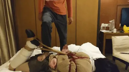 郊狼疯狂点击放置挑逗,脱下制服鞋tk脚心。之后被驷马捆在床上手掌被全包裹放置。再被当成健身工具玩耍~