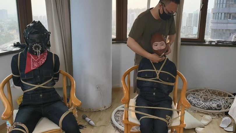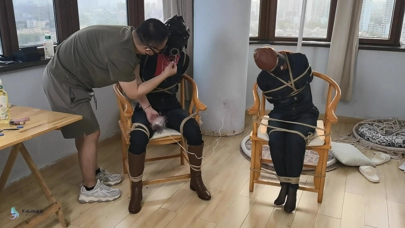 【JS】【欣妍 】【宫怡】绑了两个女牛仔靴子头套棒棒刺激