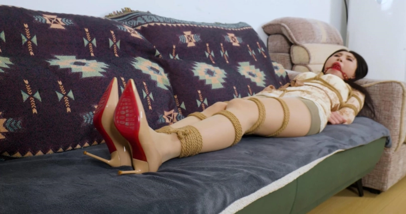 【红鲤鱼】旗袍肉丝多种姿势捆绑和封嘴