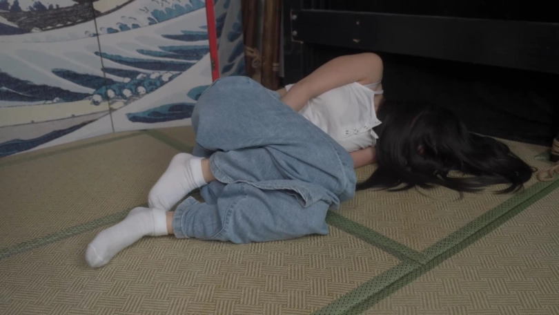 穿着牛仔裤的邻家小姐嗷嗷被跟踪者午夜抓回到房间中玩弄的蜷缩抽搐,