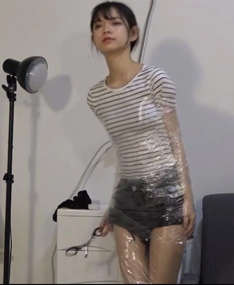 这一次她又感觉到自己的身体不受控制了,而这一次捆绑她的不是绳索,而是保鲜膜,小A的全身都被保鲜膜缠了个结实