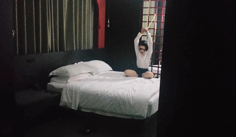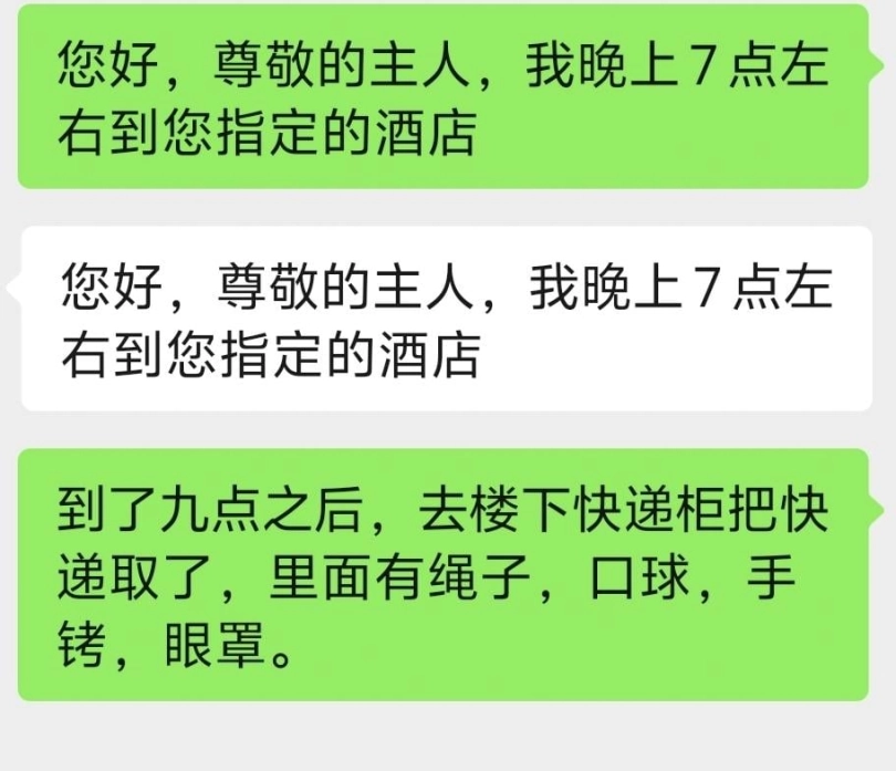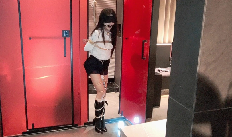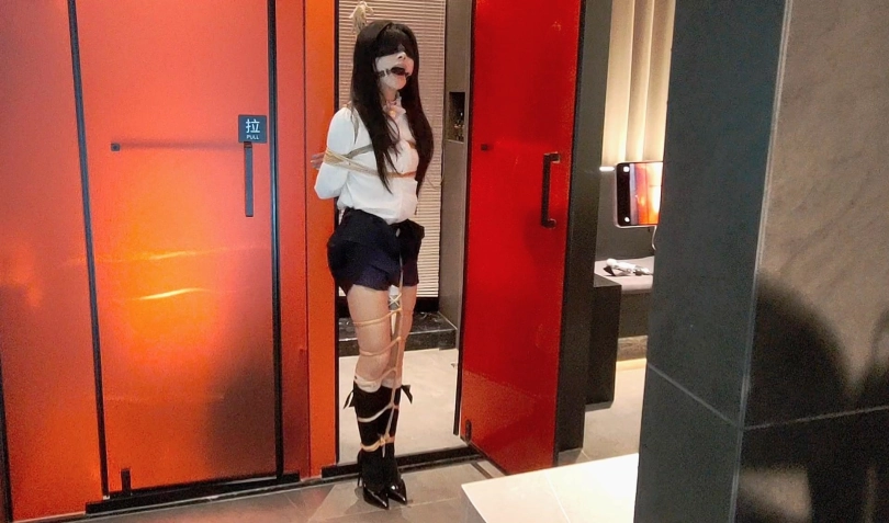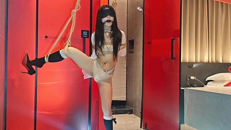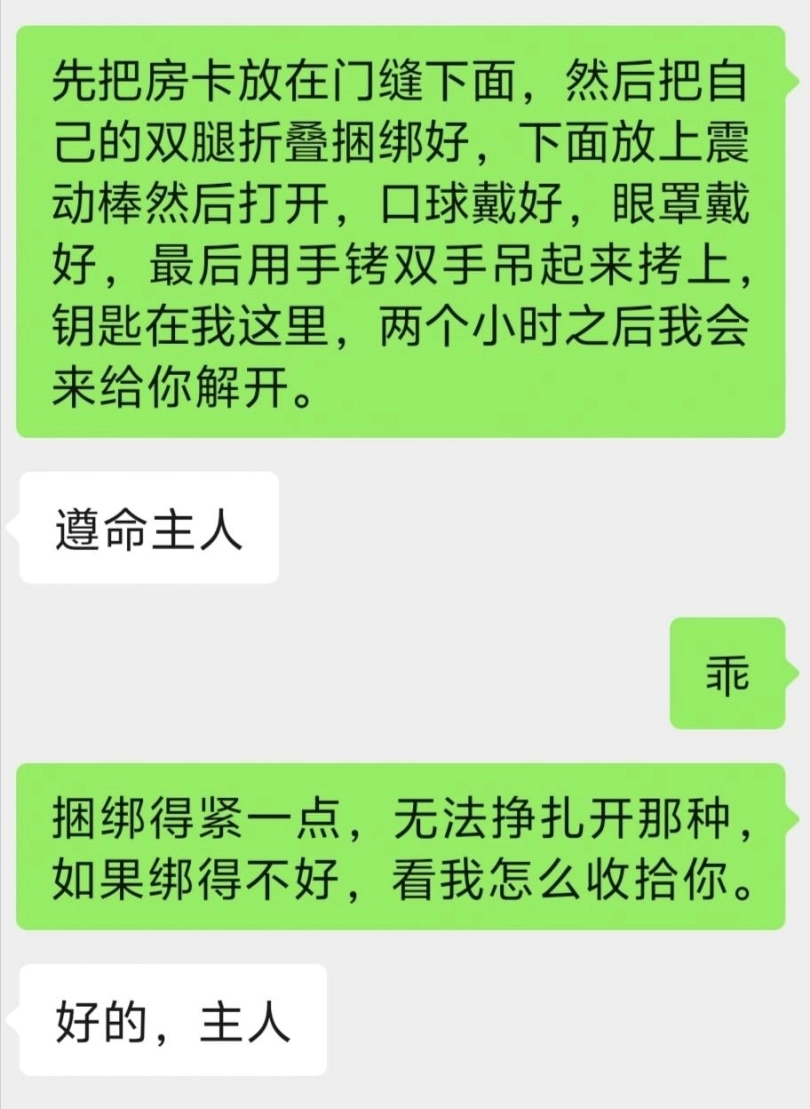网上聊了挺久了,一直都是网调,有时候会发布一些远程任务,这次终于鼓起勇气开始落实现实调教,第一次玩现实既刺激又害怕,又害羞!!任务先是要求她把房卡放在门缝下面,自己到酒店把自己绑好之后最后用手铐无法脱缚,在没有钥匙,自己蒙眼堵嘴,放好振动玩具的情况下,静静的等待主人的到来。等了大概一两个小时的样子,主人终于来了,一切才刚刚开始,一只如此性感尤物出现在视野里面,接下来第一次享受到了束缚下的强高,强制口,单腿吊缚,挣扎,疼痛,羞辱,鞭打一系列的完美邂逅