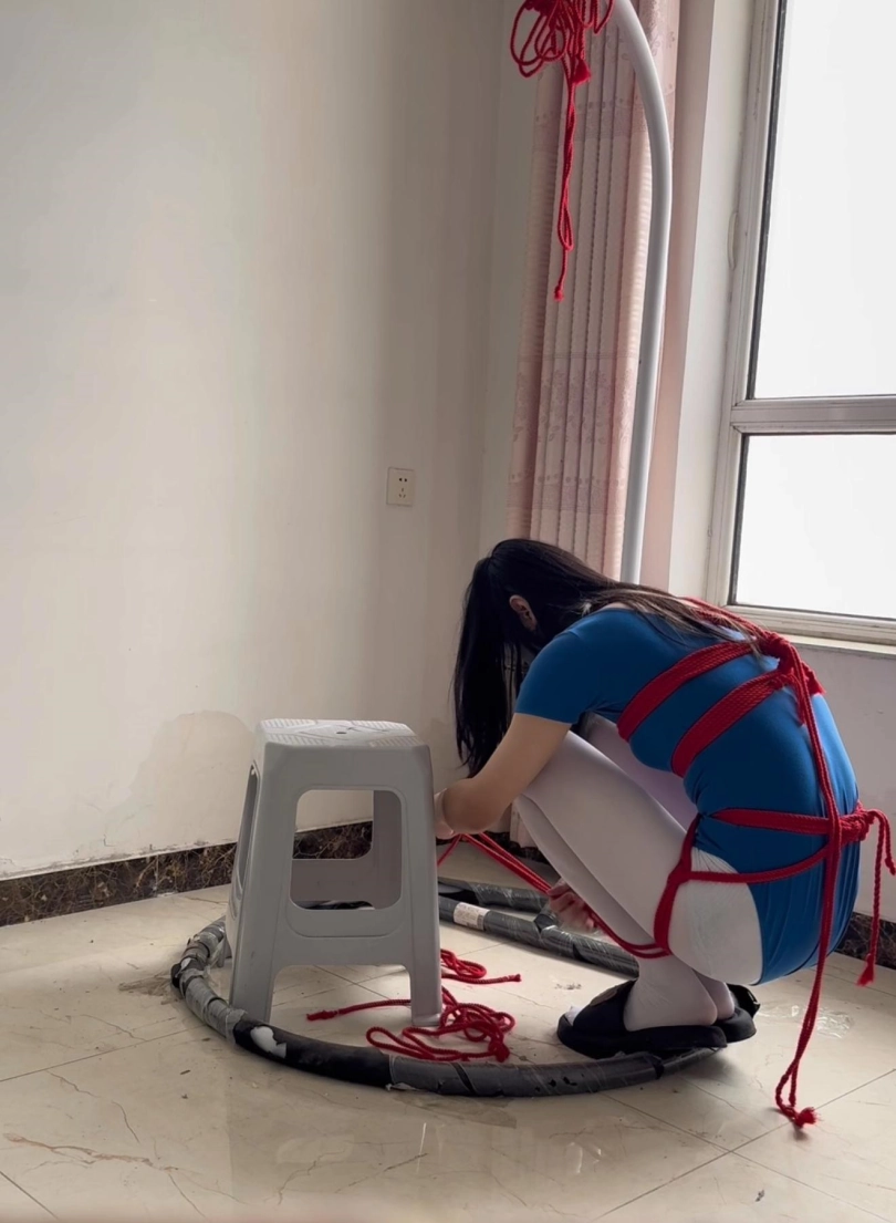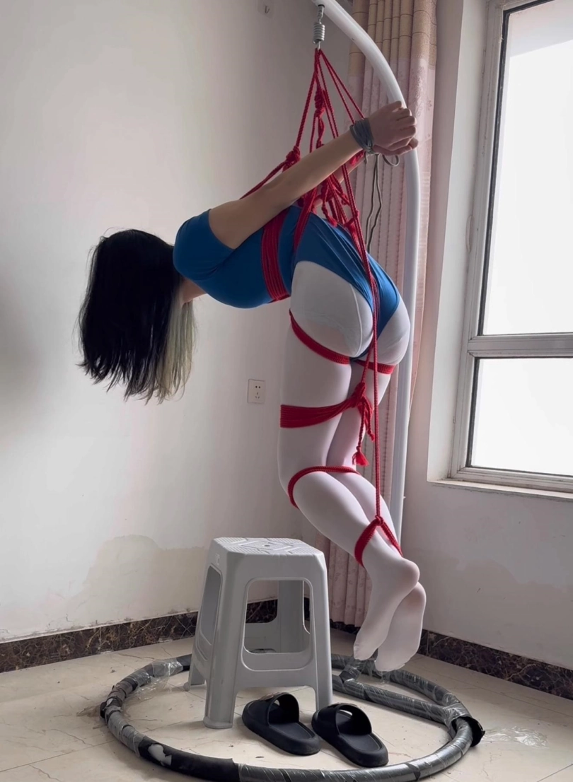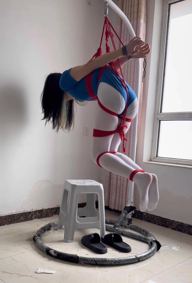 用了内圈绳子在胸部承重,这样体重偏低的话吊起来其实已经压迫很小了~郑重提醒,尽量再有人的情况下尝试,提前准备剪刀!!