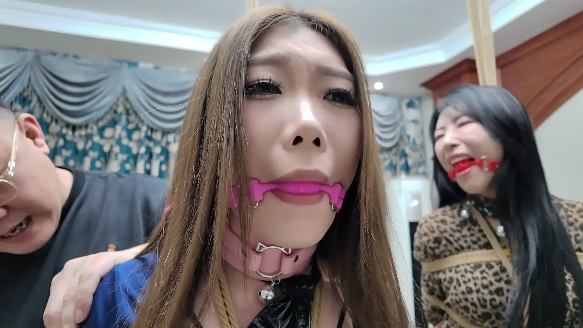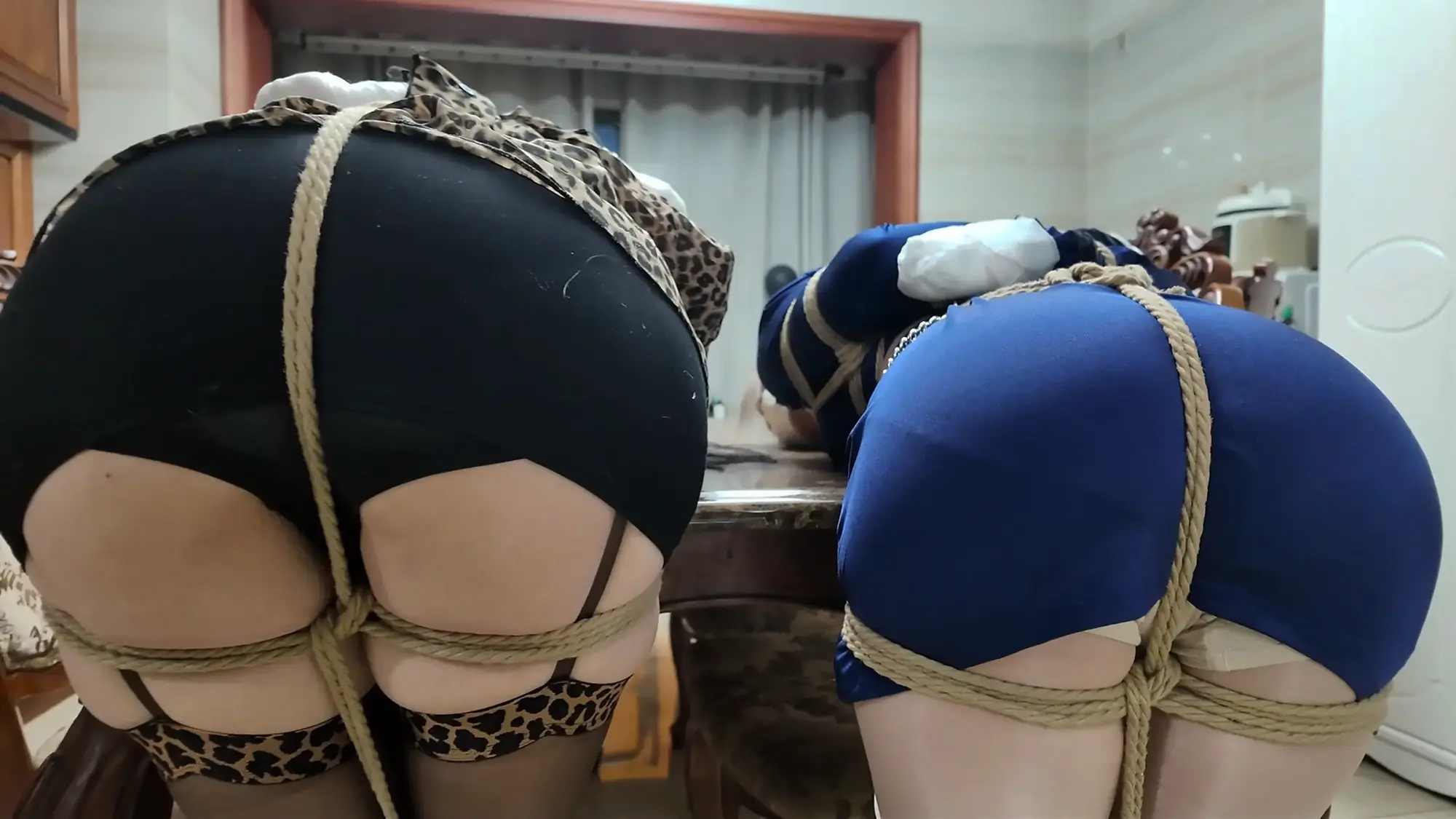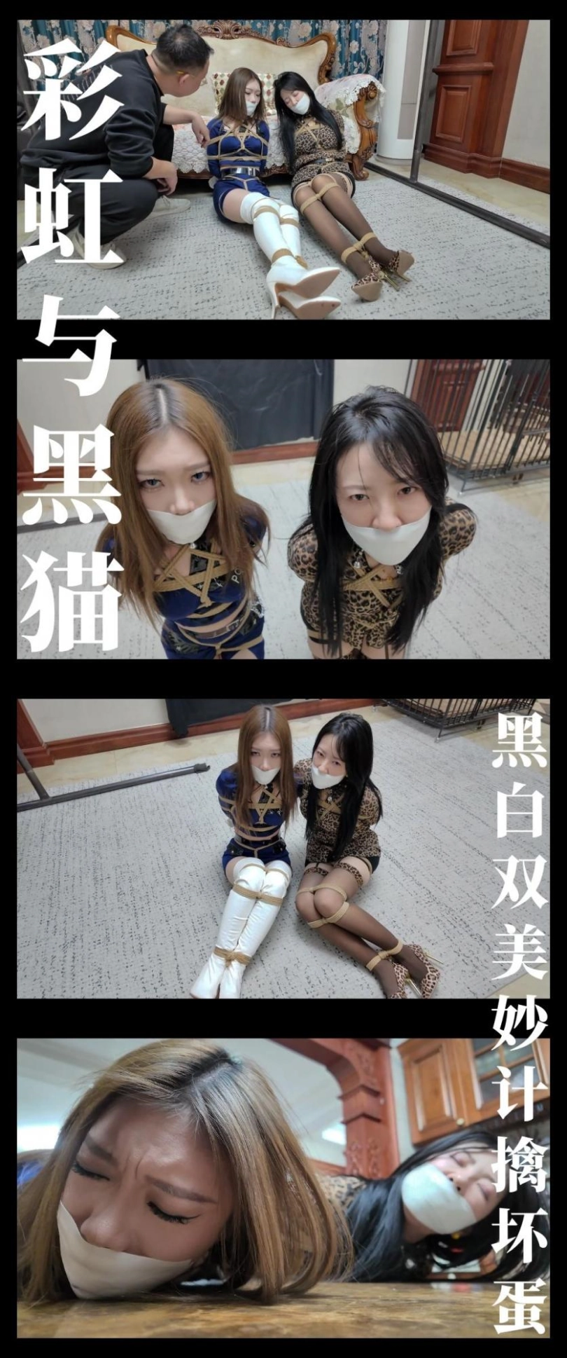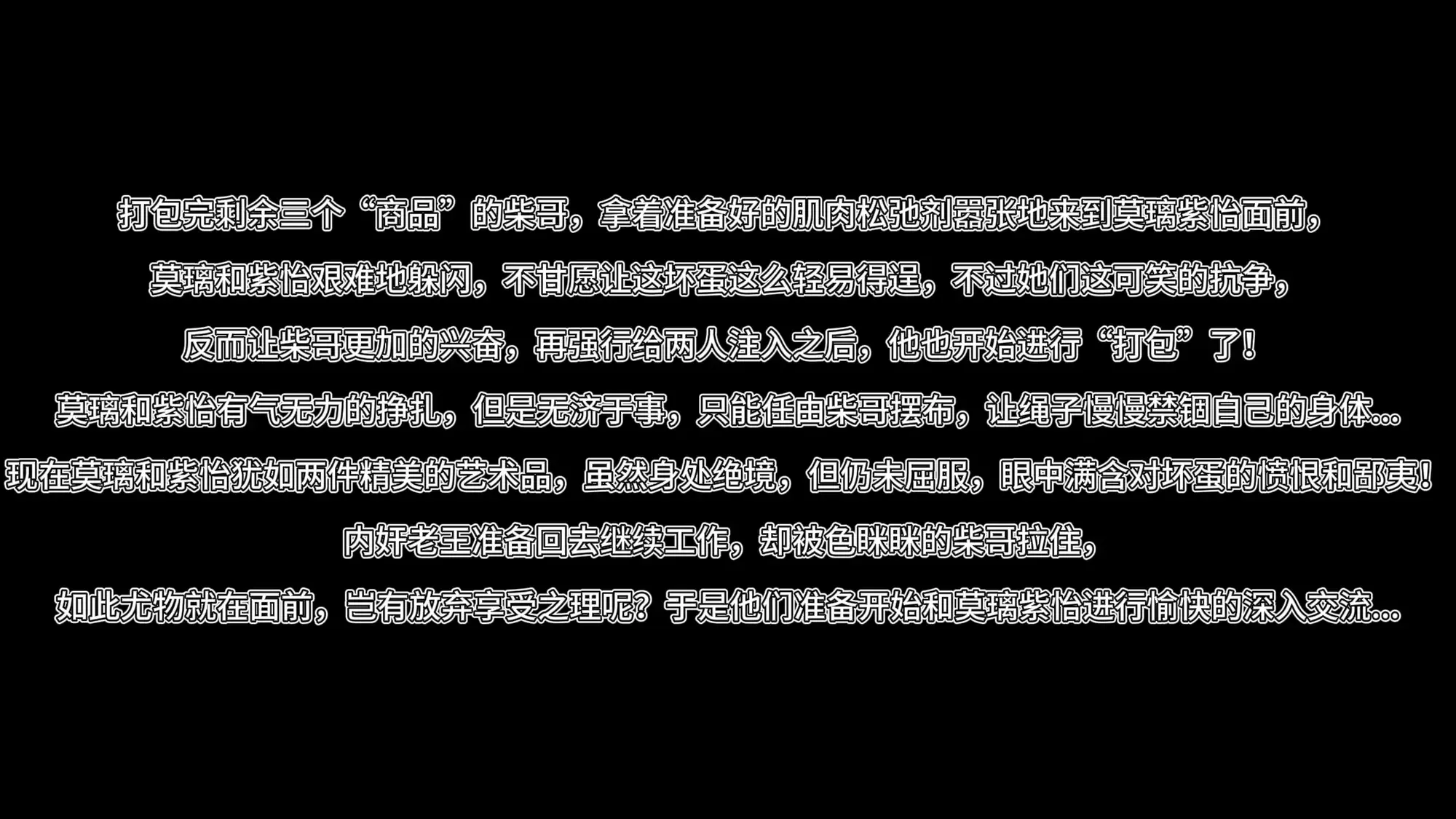 莫璃和紫怡有气无力的挣扎,但是无济于事,只能任由柴哥摆布,让绳子慢慢禁锢自己的身体...
