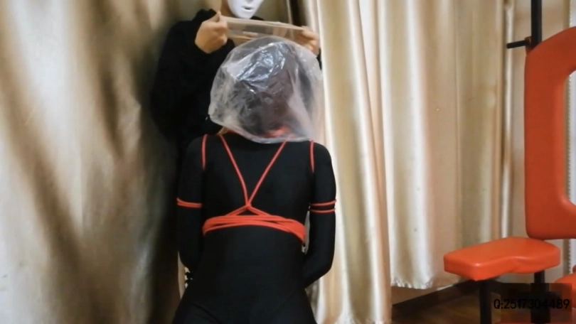 【时间煮雨美束论坛】《入室捆绑zentai窒息》漂亮女孩迷昏捆绑调教,全包紧身衣zentai塑料袋套丝袜窒息。