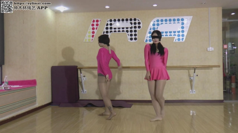 老师:两位美女好好跳啊,我们老板也会来看的。 二女:好。 老师:我们老板,想给你们增加点难度,你们先放松一下。 老板:来换个绑法,再封住嘴巴。 老板:注意用鼻子调节呼吸啊! 老板:跳得不错,休息一下吧!当然,不能用普通的休息方法啦!先来个驷马。 眼睛也用胶带蒙上。看看你们配合能力如何了,多久能逃脱。 舞者1:呼,终于。。。 舞者2:呜呜呜呜(别忘了我)。。。。 舞者1:真想先调戏你一下,可惜没时间了。 老板:行,时间上还说的过去。最后再看看你们不绑手脚,只蒙眼封嘴能做到如何吧。