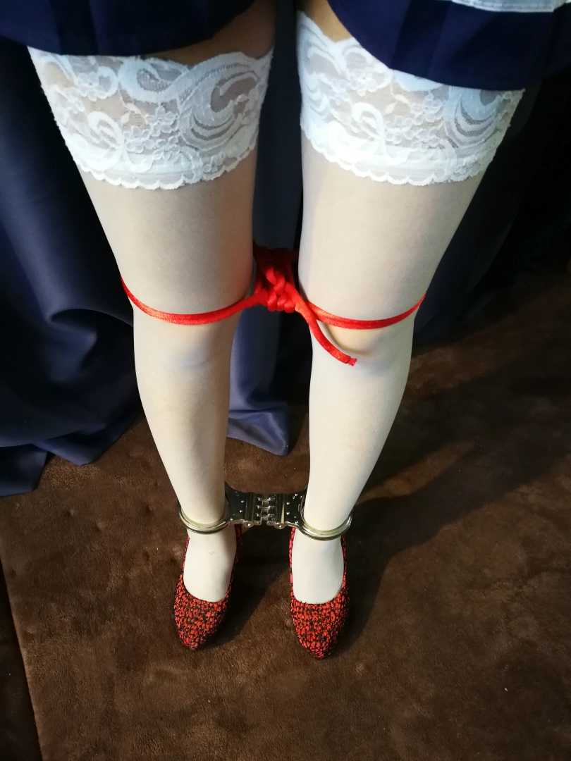 男主给女主松绑,让女主换上学生装,换上假高筒袜,换丝袜过程特写2分钟,裙子要超短超短几乎遮不住那种。然后给女主口中塞入丝袜并且胶布封嘴,绑上龟甲缚,用日式捆缚捆绑双手,加上股绳,然后将女主捆成开腿缚,露出内裤丝袜,然后此时男主说出真相