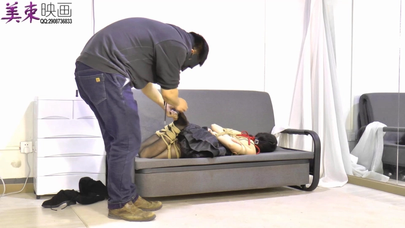 玩弄之后,彪哥将华冰冰按上图所示吊起来。开始联系买家。华冰冰又开始剧烈的挣扎。