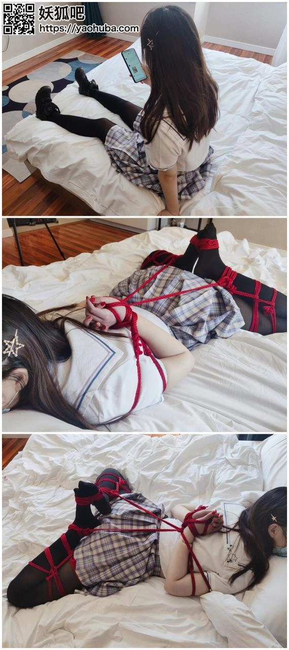 这次绑了个超级清纯可爱的jk小萝莉!虽然妹子十分清纯可爱,但是因为是观众老爷的定拍要求,我还是上来就给她绑了个结结实实的后手观音,并且像绑小动物一般给她来了个结实的分腿驷马。